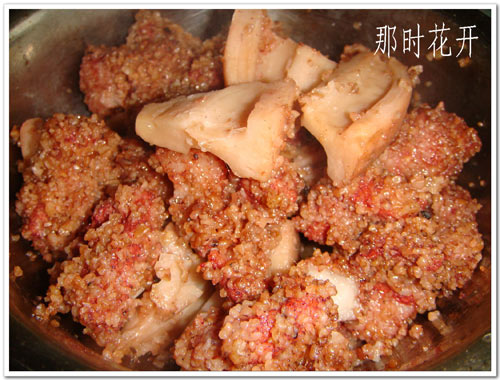 蒸肉粉里味都调好了,所以盐不要给多了。要是用五花肉蒸莲藕就不要给色拉油了。