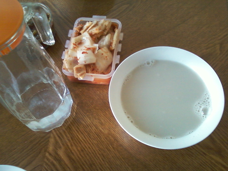 5、盛碗,再配上油条,还有奶婆婆做的泡菜,味道好极了。