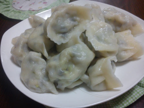 以前在家包饺子基本我就是个跑龙套的~~东晃晃西晃晃的等着吃~~因为包饺子是我老爸的绝活儿,那速度,那造型,简直都专业了~~包的饺子皮薄馅大,想想我就流口水~~~ 来了这里第一年春节饺子只能去中国食品店买,但是有点担心卫生安全问题~~后来搬出来住了饺子都是买的韩国饺子,难吃极啦~~馅里除了粉条没什么了。。。。终于有天晚上,跟猪公玩了半宿游戏之后,饿的潜心贴后背的,迷迷糊糊的说,咱吃饺子吧~~~于是,我忽然发现,我会调馅和面包饺子了~~~哈哈哈~~~就是造型不够靓,每个都胖胖的~~