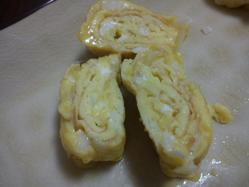 好像在韩国有很多日式的饭菜~~比方说乌冬面~~炸猪排~~紫菜包饭~~还有这个厚蛋烧,也就是鸡蛋卷~~虽然做法跟咱家的炒鸡蛋很相似,但是说实话,卷起来的鸡蛋,吃起来也很香哈~~切开一层层的很吸引人哈~~