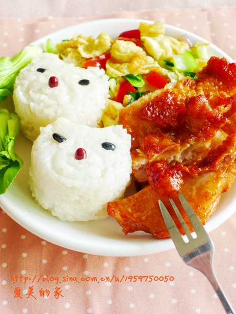 kfc的奥尔良烤翅很多人都喜欢,其实在家里可以很轻松地做出一模一样的好味道,只要备好奥尔良腌鸡料,这道菜完全是不需要厨技就可以轻松享受到的美味道。 在家用鸡腿肉做了这道奥尔良鸡肉便当,用模具做了个可爱的小熊饭团,配上五颜六色的蔬菜,摆好上桌后全家人眼前一亮,真是大人孩子都难以抗拒的美味。