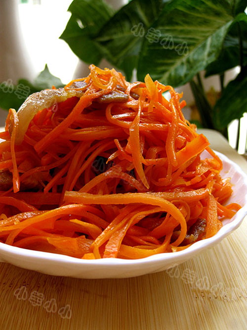 胡萝卜含有大量的胡萝卜素,但是因为胡萝卜素属于脂溶性物质,所以炒胡萝卜的时候最好能加点肉,这样胡萝卜素才能更好的被人体吸收。