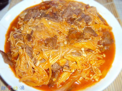 菌类最喜欢吃金针菇,凉拌或炒都好吃,今天搭配牛肉辣酱炒的也还不错,很开胃呢~~