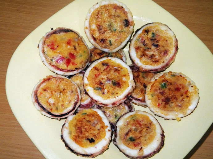 鸡蛋(适量) / 面粉(适量) / 鱿鱼(适量) / 洋葱头(适量)