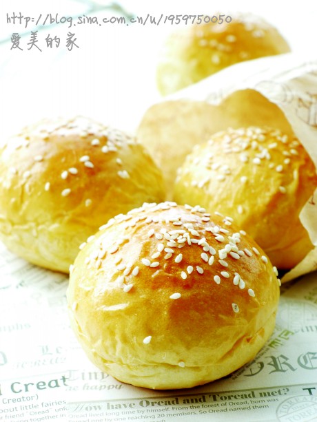 6、最后发酵至2倍大小时表面刷全蛋液撒芝麻放入预热好的烤箱190度20分钟即可。