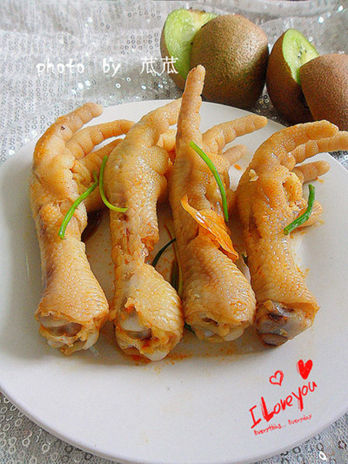 鸡爪的营养价值颇高,含有丰富的钙质及胶原蛋白,多吃不但能软化血管,同时具有美容功效。