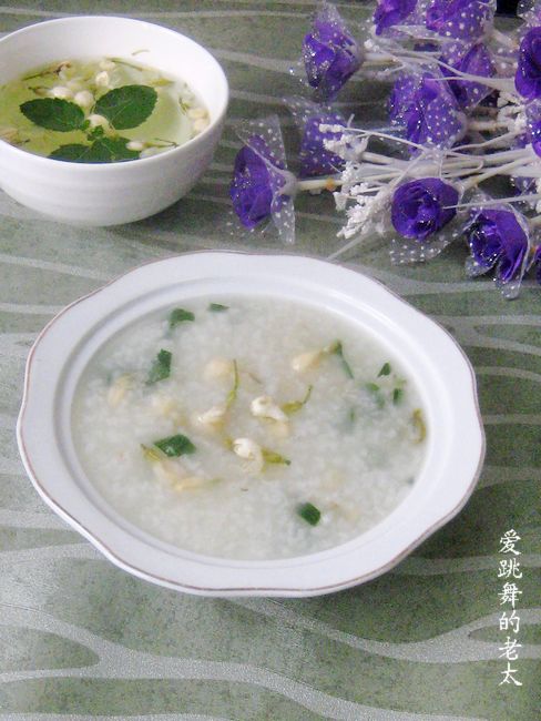 爸爸最喜欢的茶就是茉莉花茶!家里从来不脱的。 所以我们家的孩子从小就是闻着茉莉花香长大的! 也就是因为这个原因,我对于茉莉花香,总有一股说不清道不明的喜爱! 我不喝茶,一喝就睡不着,但是我喜欢闻这个味道。 茉莉花的作用 1、行气开部。茉莉花所含的挥发油性物质,具有行气止痛,解郁散结的作用,可缓解胸腹胀痛,下痢里急后重等病状,为止痛之食疗佳品。 2、抗菌消炎。茉莉花对多种细菌有抑制作用,内服外用,可治疗目赤,疮疡,皮肤溃烂等炎性病症。 薄荷;性凉味辛,有宣散风热、淸头目、透疹之功,具有兴奋大脑、促进血液循环、发汗,与消炎鎭痛、止痒解毒和疏散风热的作用. 茉莉花薄荷糯米粥--有清热解暑、化湿宽中的作用,治暑热纳差、胃脘隐痛等症。对女性有痛经者更宜,经期也宜食用。
