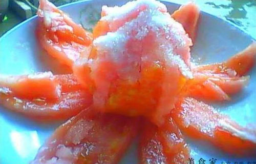 1、“雪盖火焰山”:糖+番茄。