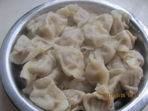 及以下步骤:在加入擦好的胡萝卜丝。 搅拌均匀,肉馅就调好了。 把和好的面团揪成小剂子,赶成圆皮。 包上肉馅就好了。 包好的饺子。 锅里放水,水开后下入水饺,煮开2分钟,就熟了。 开吃喽.... 饺子吃吧.... 一大盆饺子呢。 一大盆饺子呢。