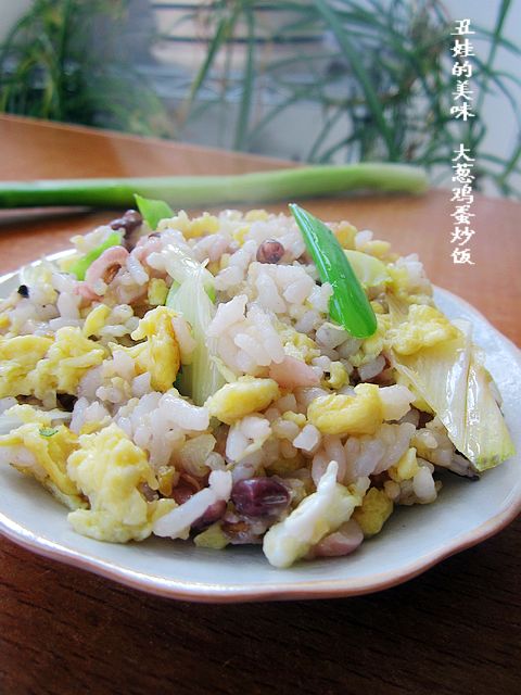 鸡蛋(2个) / 香菜(1绺) / 大葱(1根) / 薏米红豆饭(1碗)