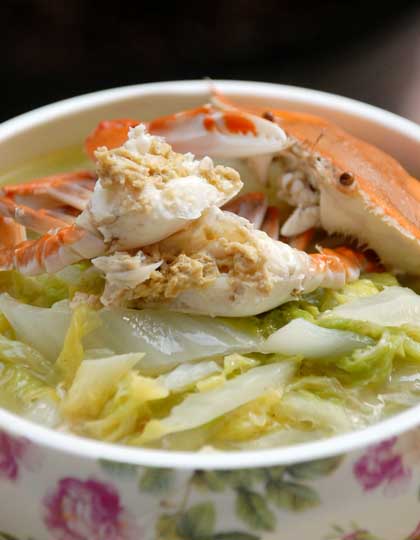 蟹和白菜都偏寒性,所以最好加点姜丝同煮。