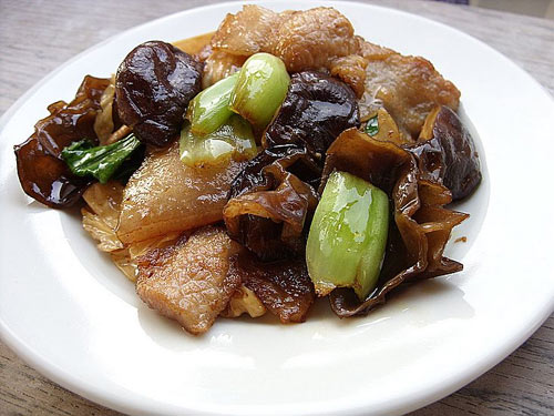 香菇(5朵) / 五花肉(400克) / 干木耳(5朵) / 小青菜(50克)