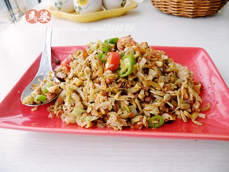 又是一道开胃下饭菜,在临沂很多饭店都有,也不知为什么起这个名字,不是很文雅,但是的确好吃,大概是吃了就忘不掉的缘故的,尤其适合卷着煎饼吃。