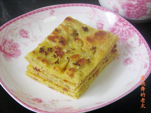 及以下步骤:把所有食才放入大碗。 准备面粉,鸡蛋,糖,桂花等食材。 把所有食才放入大碗。 准备面粉,鸡蛋,糖,桂花等食材。 把所有食才放入大碗。 准备面粉,鸡蛋,糖,桂花等食材。 把所有食才放入大碗。 加一点水,搅拌均匀。 平底锅放油,锅热,放入面糊,中火煎。 翻一面煎透即可。