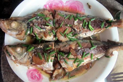 6、好喽,我的第一道鱼鱼做好了,装上盘子洒上葱花!大功告成!