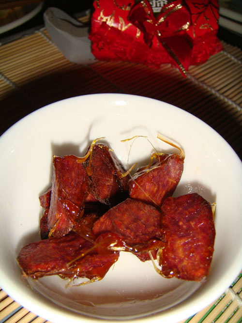 及以下步骤:中小火翻炒让糖均匀受热。 转小火炒至溶化。 炒好的糖浆呈琥珀色。 倒入炸好的紫熟块,快速翻炒让糖汁均匀的裹在薯块上,离火出锅。 准备一碗凉开水,蘸水食用。 中小火翻炒让糖均匀受热。 转小火炒至溶化。 炒好的糖浆呈琥珀色。 倒入炸好的紫熟块,快速翻炒让糖汁均匀的裹在薯块上,离火出锅。 准备一碗凉开水,蘸水食用。