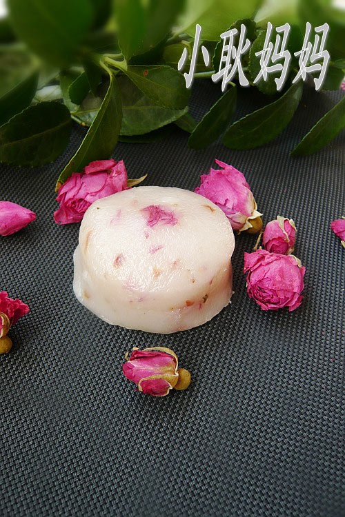 及以下步骤:用模具做成小坯子。 上笼蒸20分钟左右。 可以享受了! 剩下掰开花瓣加入糯米粉里面。 澄粉用烧开的玫瑰茶汤烫熟。 加入糯米粉里面,加白糖,适量的茶汤揉成面团。 揉好的面团醒20分钟左右。 用模具做成小坯子。 上笼蒸20分钟左右。 可以享受了!