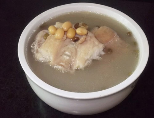 1、黄豆、绿豆各50克,鱼骨500克、生姜5片,蜜枣2粒,陈皮一片。