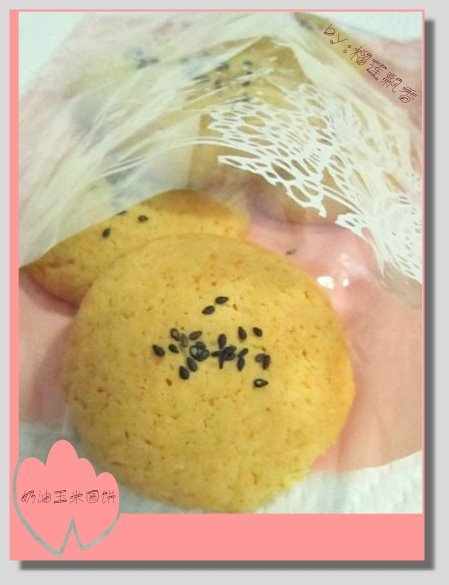在原料中加大了玉米面粉的用量,很忐忑的等着饼干出炉。效果真的不错,酥脆香甜~~