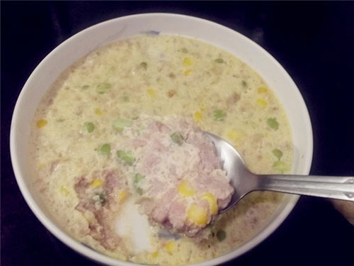 7、瘦肉50克,鸡蛋一个,玉米,毛豆,生粉,生抽,油适量