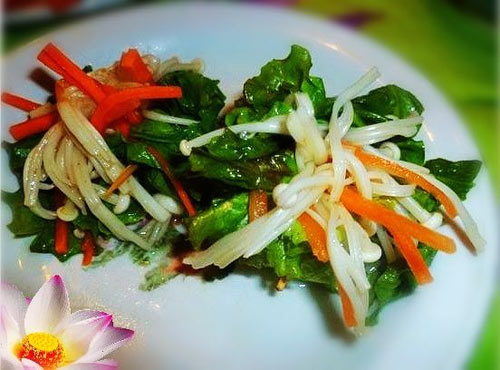 金针菇和生菜含有大量纤维,能促进肠胃蠕动,却几乎没有什么热量,口味又好,适合想减肥的人吃。