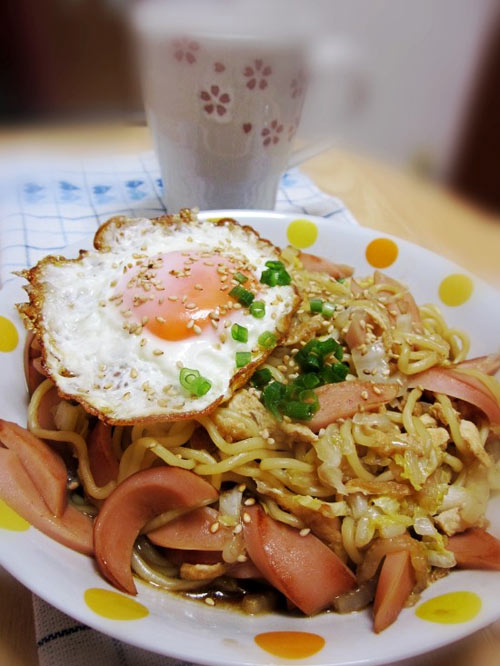 鸡蛋(1个) / 香肠(1根) / 油豆皮(适量) / 炒面调味粉(1包)