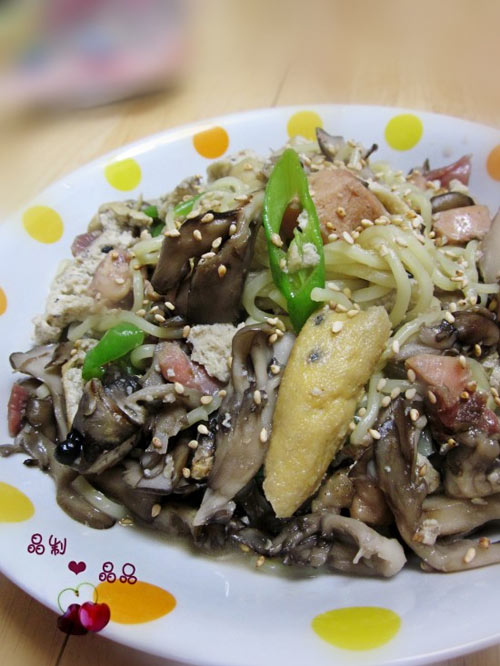 三月份日本大地震的时候,缺这少那的,担心断水断电断粮,便分批次从超市扛回家许多方便食品。压缩饼干啦,各类罐头啦,速食米饭啦,方便面啦等等。 米饭和方便面已经被消灭;饼干嘛,保质期很长,不着急;前两天发现,两罐罐头鲔鱼和一罐罐头鸡肉快要到期了。鲔鱼拌了意面,味道不错,鸡肉嘛,就来做炒面吧。 今日菜谱——鸡肉蘑菇炒面。