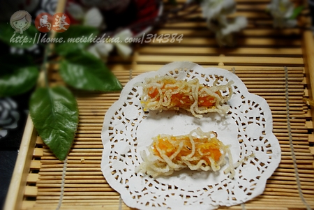 偶然想到做的小吃,上次炸粉丝觉得味道不错,就像这东东要是炸完装饰食物应很不错,味道也香。