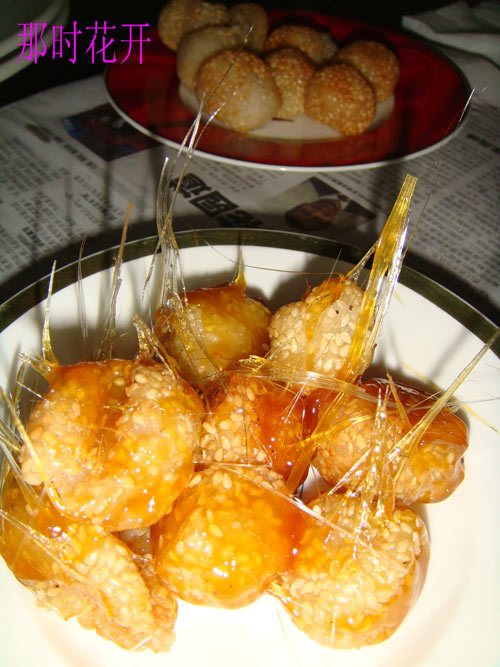 前面做了一道拔丝小汤圆,意犹未尽的又做了这盘拔丝麻圆。