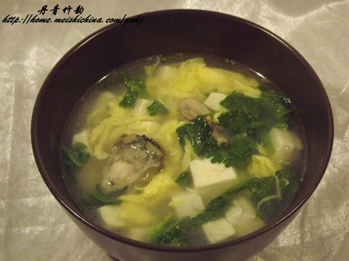 这道汤添加的调味料非常之少,菜品突出材料的原汁原味,有豆腐的香、菜香、蛎蝗的鲜香,虽为一锅汤中,但又保留着各自的特点,值得一试。