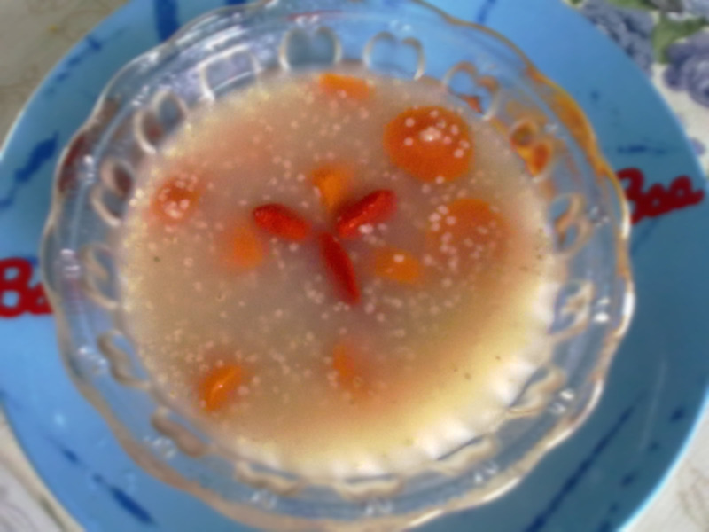 及以下步骤:放泡好的枸杞点缀。 这就是黑小米,里面还掺了些普通小米--商家真黑。 小米淘洗干净。 这就是黑小米,里面还掺了些普通小米--商家真黑。 小米淘洗干净。 小胡萝卜切小段。 米和胡萝卜一起放高压锅里。 把泡枸杞的水也倒入锅里。 开锅转小火15分钟。 放泡好的枸杞点缀。