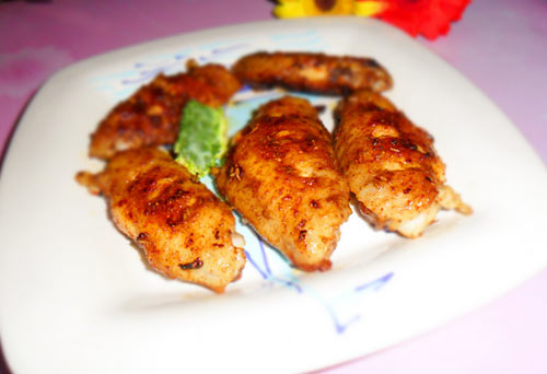 7、待鸡翅双面煎制9成熟时刷上一层蜂蜜,撒些孜然颗粒后关火。用余温烘香孜然粒出盘。