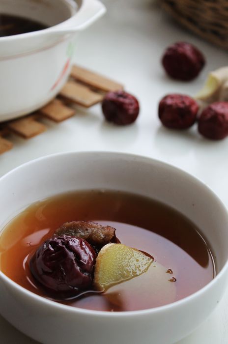 这款饮品,煮好后可以和红枣姜片一起吃下去,也可以将其过筛,只喝汤汁。但一定要趁热喝,放温了效果就不好了。