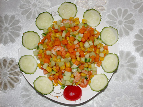 虾仁(适量) / 胡萝卜(适量) / 黄瓜(适量) / 玉米(适量)