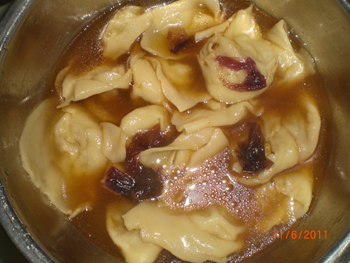 及以下步骤:两个角一对接就成了 好看吧,包好就下锅吧 我家宝贝最爱吃我做的,真是香呀,里面有好几种菜,对于不爱吃菜的宝宝来说,这确实很不错。 鸡蛋炒散,晾凉备用 猪肉剁成肉馅,买现成的也行,我用的是现成的肉馅,在做青菜之前,先把肉馅拌好,先用少量的水把肉馅解开,如果太干不好吃,在放上香油,胡椒面,花椒面,酱油,鸡精,味素,玉米油是放上葱段,姜片,大料炸好的,放凉后放入肉馅中。 在做馅之前和面,用冷水和面,醒半小时,拌好馅之后,开始把面擀成小块,要比包饺子的块大一些,在把面块擀成一个小圆饼,在用刀切成十字,就成四个小面皮了。 开包,把馅放里,把三角这边往上一按实,第一步就好了 两个角一对接就成了 好看吧,包好就下锅吧 我家宝贝最爱吃我做的,真是香呀,里面有好几种菜,对于不爱吃菜的宝宝来说,这确实很不错。
