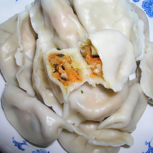 及以下步骤:再加入白菜、盐调匀。 将白菜挤出的水份加入适量热水倒入面粉里和成面团。 做成小剂子擀成皮包成饺子。 煮熟装盘即可。 炒锅里倒入香油和花生油烧热,爆香花椒,花椒烧糊后去掉。 将香菇末倒入炒锅炒香,加入胡萝卜丝一起翻炒,炒出红油后即可关火。 再加入白菜、盐调匀。 将白菜挤出的水份加入适量热水倒入面粉里和成面团。 做成小剂子擀成皮包成饺子。 煮熟装盘即可。
