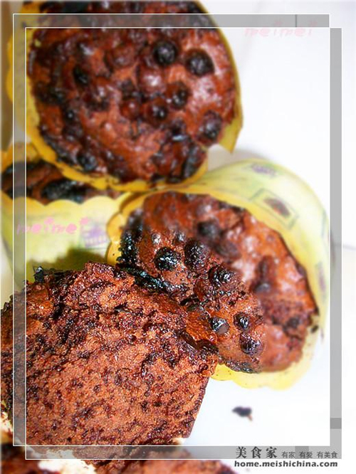 嗯...我很喜欢这个巧克力杯子蛋糕 ,它有很浓厚的巧克力味道。这款蛋糕我做了好几次。有次只是上成品图及食谱,没有记录做法及步骤。 虽然是说做了几次,可是这次真的有点失水准。虽然蛋糕体没影响口感,不过上层巧克力豆稍微有点烤过了。其实都是我大意啦!在做这个蛋糕的时候已经晚上11点了,本想蛋糕进入烤箱,25分钟去洗个澡,应该没问题。哎..所谓人算不如天算。不过还是扫完啦....