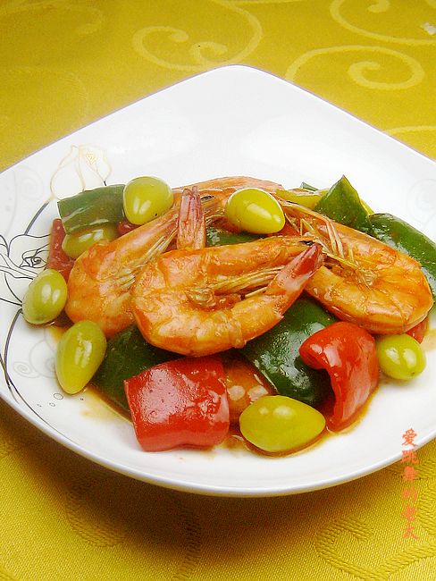 白果青红椒炒对虾美味诠释: