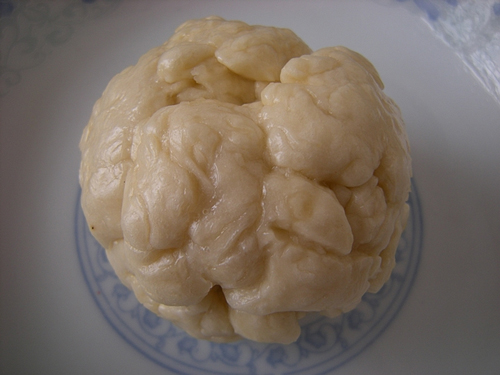 7、揉成光滑的面团,我的面粉放多了,揉不动了,所以十分不光滑。