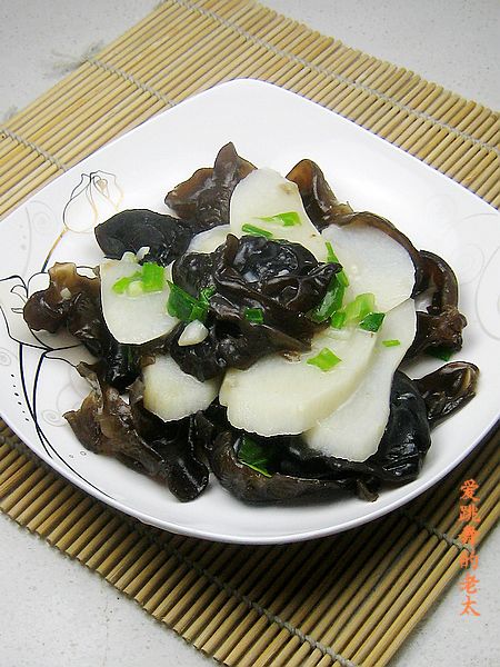 及以下步骤:锅里油热,放姜末,蒜末爆香 黑木耳泡发好,去杂质,洗净,撕小朵,山药去皮,洗净,切片. 锅里油热,放姜末,蒜末爆香 黑木耳泡发好,去杂质,洗净,撕小朵,山药去皮,洗净,切片. 锅里油热,放姜末,蒜末爆香 黑木耳泡发好,去杂质,洗净,撕小朵,山药去皮,洗净,切片. 锅里油热,放姜末,蒜末爆香 放入山药片,加料酒煸炒一下 放入黑木耳煸匀,加小半碗水,煮5分钟左右。 加盐,糖,鸡精,葱花,调味即可.
