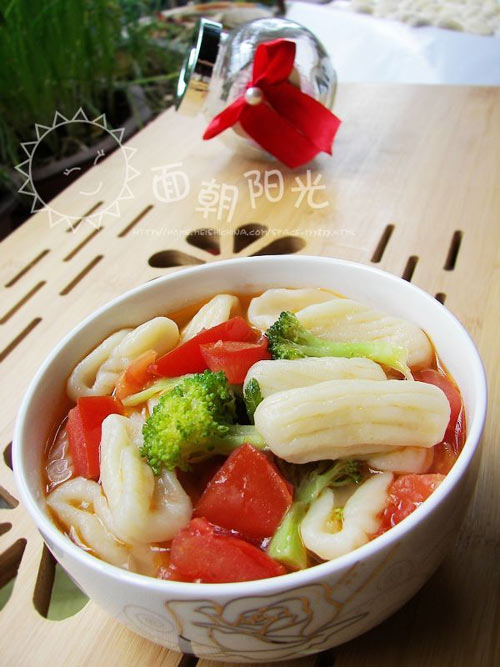 及以下步骤:锅里入少量油,下西兰花和番茄稍加翻炒。 下煮熟的贝壳面再次煮开,调入适量盐和味精。 准备好材料,番茄和西兰花洗净备用。 面粉加水揉成面团,醒上半个小时。 面团搓成细长条,切成一个个小团子,放在寿司帘上用拇指按成贝壳型。 西兰花掰成小朵,番茄切成小块备用。 汤锅里加入水烧开,下贝壳面煮。 待贝壳面煮至浮起,将面捞出备用。 锅里入少量油,下西兰花和番茄稍加翻炒。 下煮熟的贝壳面再次煮开,调入适量盐和味精。