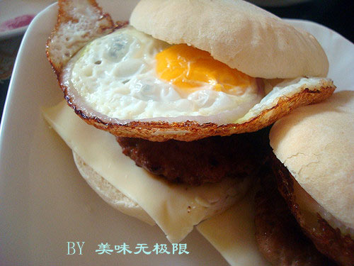 偶尔没时间吃早饭的时候会在kfc或者麦记买个汉堡做早餐,可是偶发现他们的汉堡越来越小,肉饼越来越薄,这不是变相涨价嘛!!哈哈,没关系,偶自己做,亲们来看看偶这个怎么样?
