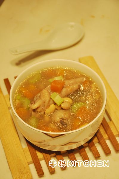 今天的这款靓汤,真是极为养颜的哦。鸡爪经过长时间的炖制,它的胶原蛋白发挥的极为完成,喝汤的时候汤汁都可以将整个嘴唇粘起来哦。而且还配上了适量的黑豆黄豆,双豆并下锅,其营养也不在话下了吧,蛋白质,多样维生素,真是做到了活血泽肤的功效哦。当然这款汤底也不可以长时间食用,一星期炖它一次足已。我呢最多是半个月炖制一次,为自己还有家里的另二女美美容呵呵活活血。 送上先,希望你们喜欢。