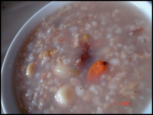 早晨老公喜欢喝点粥,他总是用前一天剩的饭加水来做,口感和营养都不敢恭维。儿子早晨也不爱吃,于是决心为家里的两男人补一补,精心做一碗好粥,哈哈。 这锅粥里的材料不下十种,营养丰富,口感软糯,里面满是爱心哪。