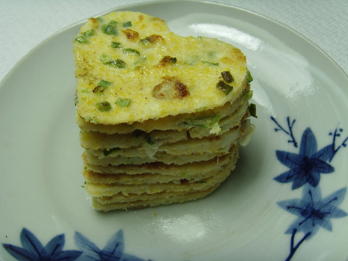 及以下步骤:直到二面都成金黃色,就可以啦。 起锅,待小小涼,用餅模切出成型。 主要材料放入拌勻。 加入半飯碗清水, 拌勻。 加入食鹽,小量五香粉,加入葱粒,再拌勻。 熱锅,抺小量食油。 鋪勻面糊,文火煎,直到脫锅,可以移動。 抺上一些食油,散上孜然粉,再翻面,同樣,文火再煎。 直到二面都成金黃色,就可以啦。 起锅,待小小涼,用餅模切出成型。