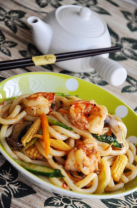 色彩丰富的料理最能够挑起食欲,即使是一盘简单的炒面,也要搭配尽量多种的蔬菜,一方面均衡摄取不同的营养,另一方面也让餐盘变得更缤纷。 日式乌冬面爽滑又筋道,加入传说中的港味调料之王——xo酱,让新鲜的虾仁与丰富的蔬菜包裹在鲜美的滋味中。谁说快餐只能用来果腹?只需少许心思,便能享受视觉与味觉的双重满足