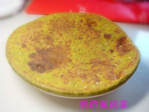 6、一面上色翻过来再烙另一面,两面成金黄色即可。