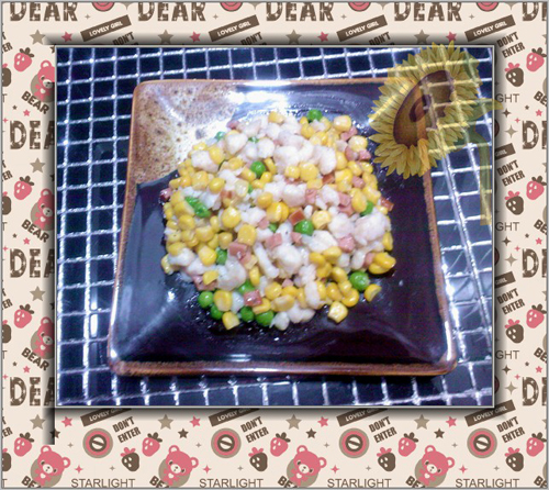龙利鱼柳(100g) / 甜青豆(30g) / 甜玉米罐头(425g) / 香肠 1根(100g)