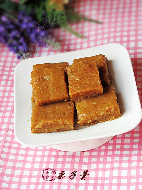 栗子羹入口绵软,带着栗子的清香。 是一道不错的养生小点。 栗子是秋冬季节的保健生养食材,具有养胃健脾,补肾强筋,活血止血,如常食栗子,可达到抗衰老、延年益寿的目的。 本糕味香甜糯软,具有健脾益气养胃,强筋健骨补虚的功效,适用于年老体弱,腰膝酸软,不欲纳食等病症。
