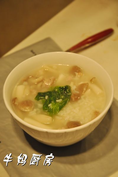 冷冷的清晨,从暖暖的被窝里出来后。唯一想做的就是喝上一点清淡又暖人的汤底。看了家里的冷饭还有一点剩菜呵呵,完成可以造就一碗丰富有味的泡饭,洗洗切切后,一份如图的菌菇泡就完成了。 过程是这么简单,味道却是极为鲜美。一碗下肚,清晨似乎也变的很美好哦/